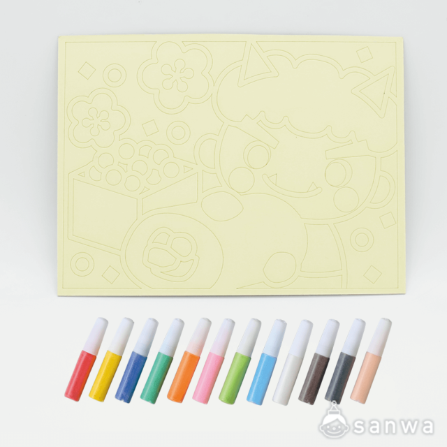 シールをめくって砂をかけるだけで、節分の砂絵を作ってみませんか?