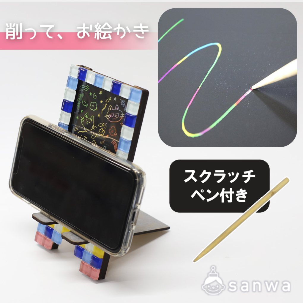 板を重ねて貼るだけで完成する、木のぬくもりが感じられるスマホスタンド工作キットです。