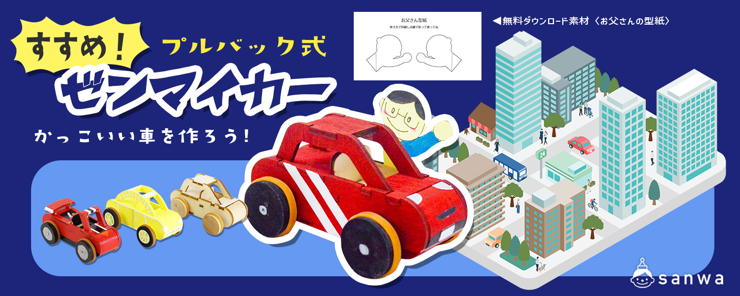 『すすめ!ゼンマイカー』は、木のパーツを型から抜いて組み立てるだけで完成する、人気のゼンマイカー工作キットです。