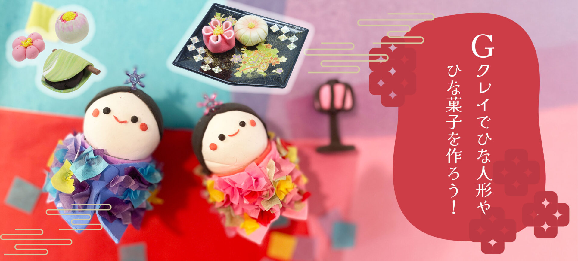 「Gクレイ(グランドクレイ)」を使ってひな人形やひな菓子など、ひな祭りモチーフを立体で作ろう。