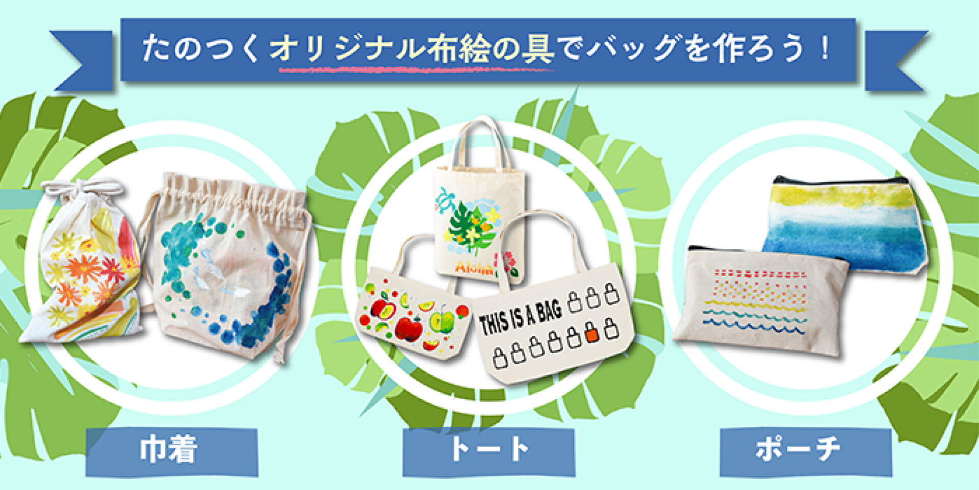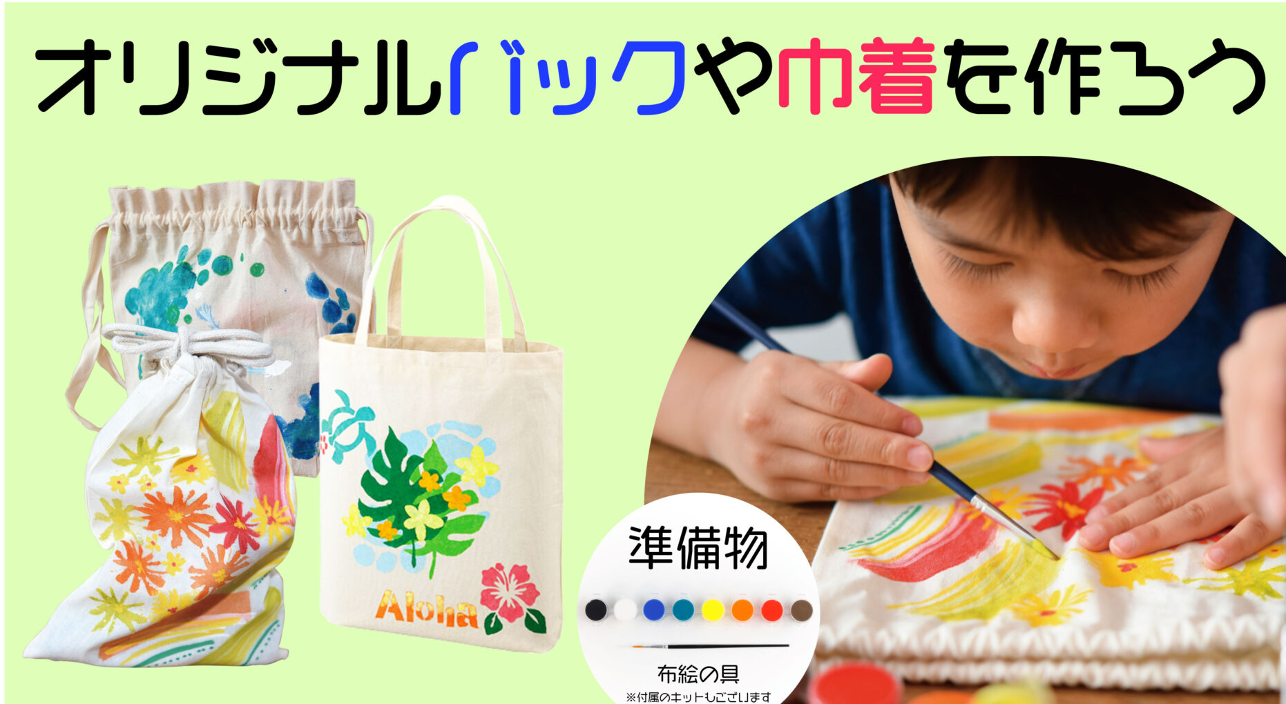 「ぬるだけで、自分だけのオリジナルバックや巾着をデザイン」できる、親子で楽しめる工作キットです。