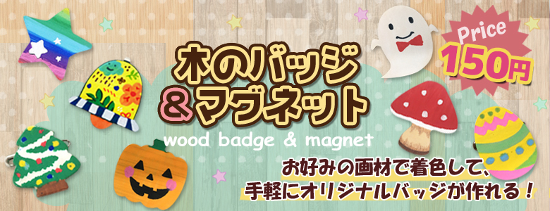 サンワの『木のバッジシリーズ』と『木のマグネットシリーズ』は、絵の具やマーカーなど、お好みの画材で着色して、手軽にオリジナル木製バッジが作れるキットです!子供から大人まで手軽にオリジナルバッジづくりを楽しむことができます。 『木のバッジシリーズ』は、安全ピンでとめるタイプで、『木のマグネットシリーズ』は、マグネットでくっつけるタイプのバッジを作ることができます。 また、『木のバッジシリーズ』と『木のマグネットシリーズ』は、OEM対応可能商品です。バッジの形をデザインに合わせて作ることが可能です。お気軽にお問合せください。