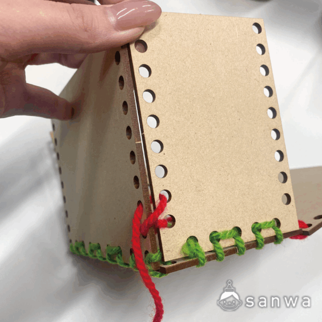 木のパーツを毛糸で縫って繋げてボックスを作る新感覚の工作キットです!