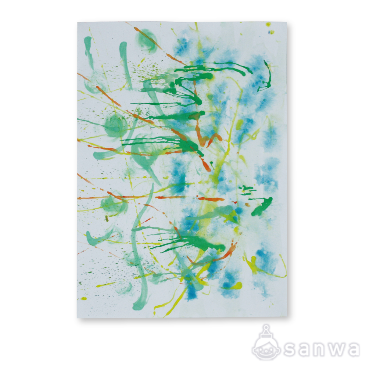 ブラシ×ぼかしあみでスパッタリング、ストローで吹き流し