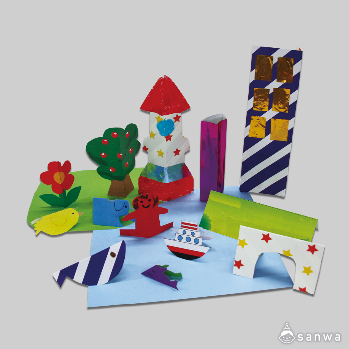 練習シートと造形紙入りで、折って立てる仕組みが段階的に学べる紙工作キットです。