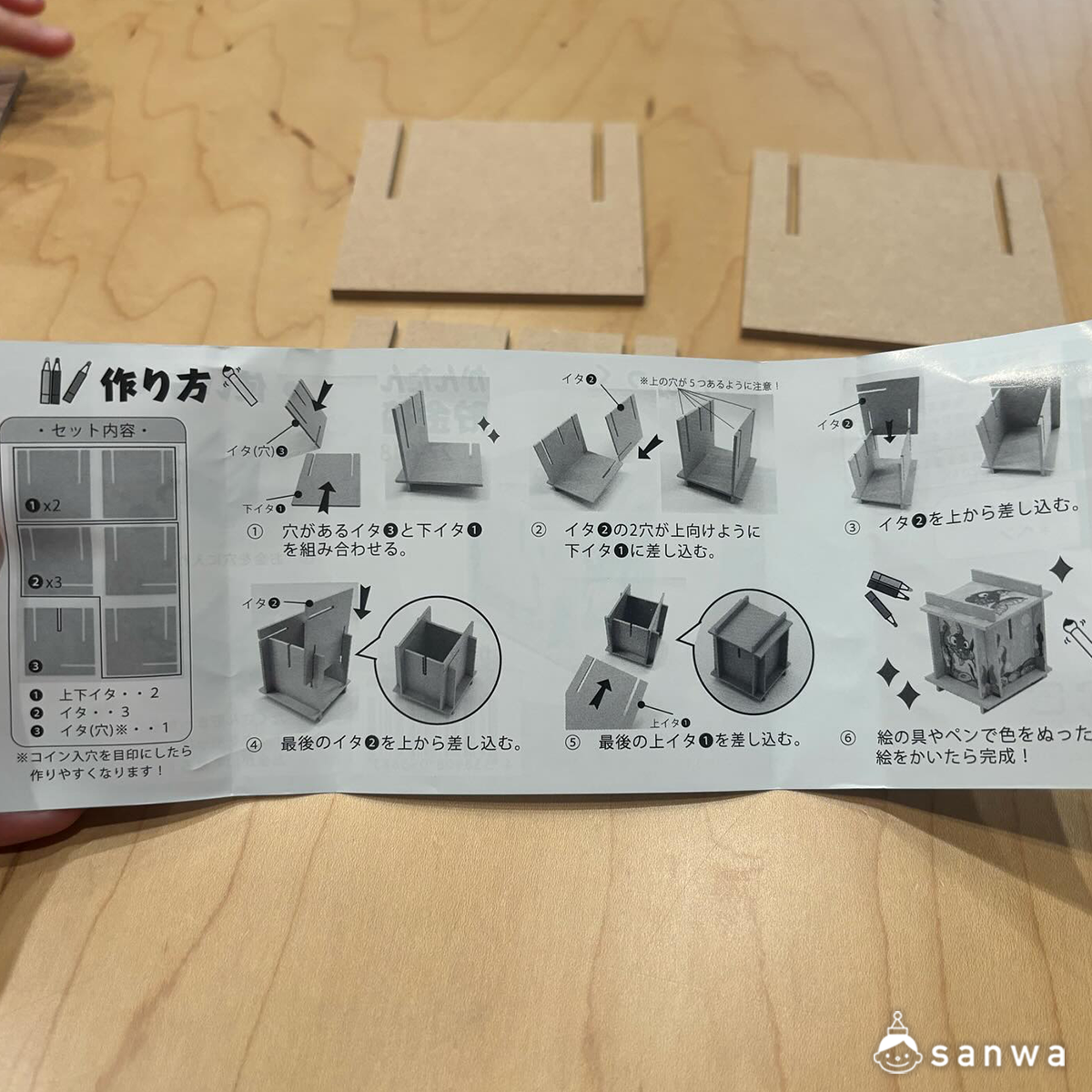 木工用接着剤やボンドが不要!!MDF板を差し込んで、好きな絵の具で塗ったらオリジナル貯金箱が完成です!